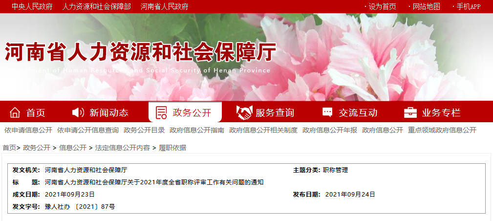 河南省人力资源和社会保障厅关于2021年度全省职称评审工作有关问题的通知