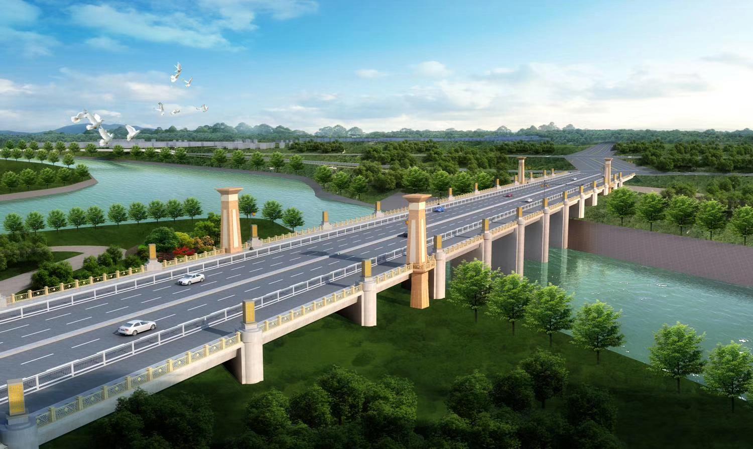 项目位于漯河市西城区S241南线上,在新开挖河道下游。丹江路规划为城市主干道,设计时速50km/h,河道中心线与规划道路中心线夹角呈130°。
